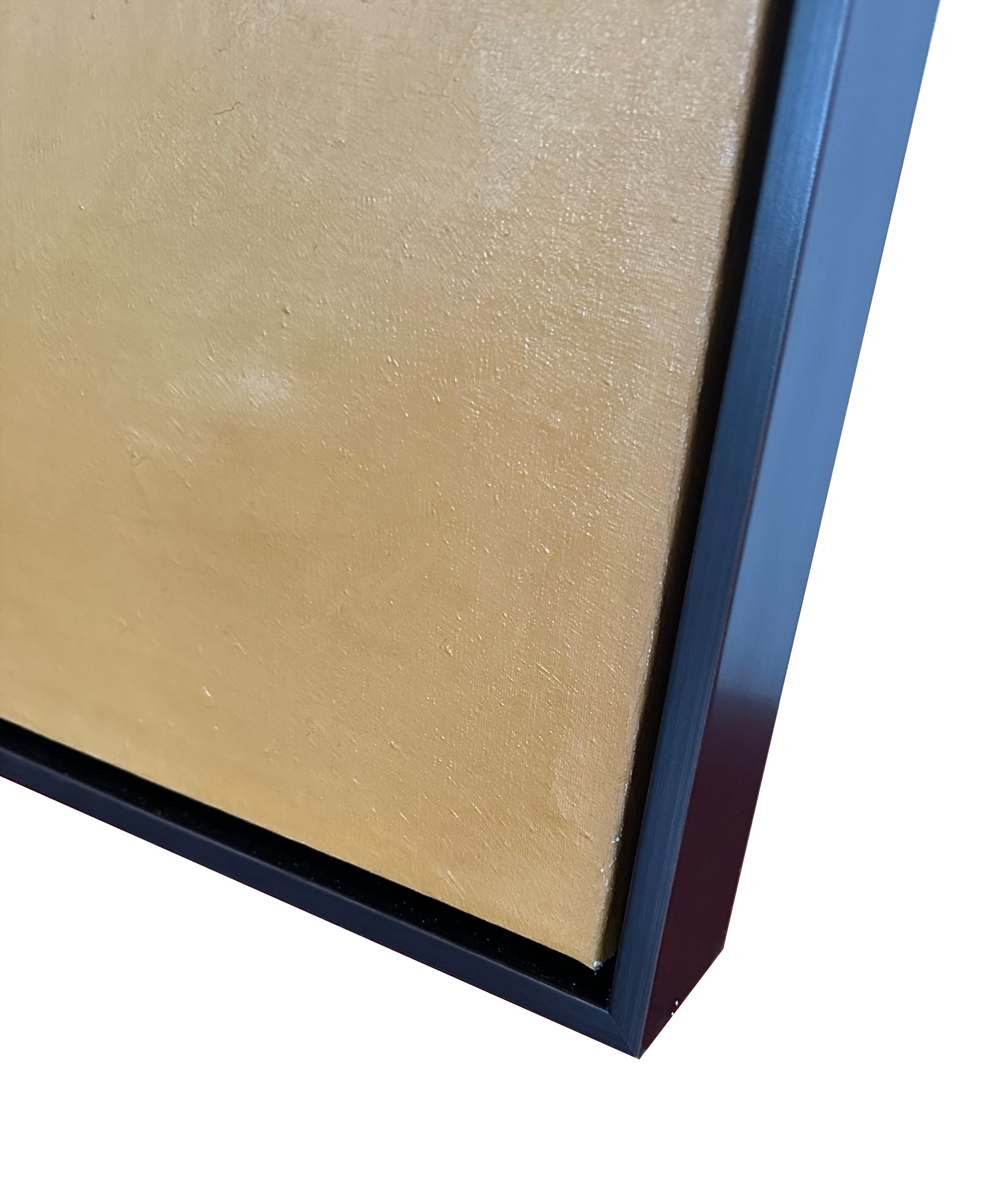 Signed, dated and titled on the back. Excellent vintage condition. Framed in a contemporary wood floater frame with a satin black finish.