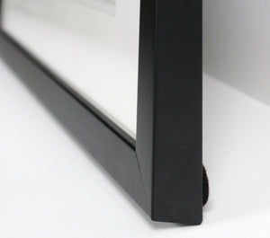 Signed lower right; signed, dated and titled on the back. Excellent condition. Framed in a contemporary wood frame with a black finish using museum-style archival matting behind conservation clear glass.