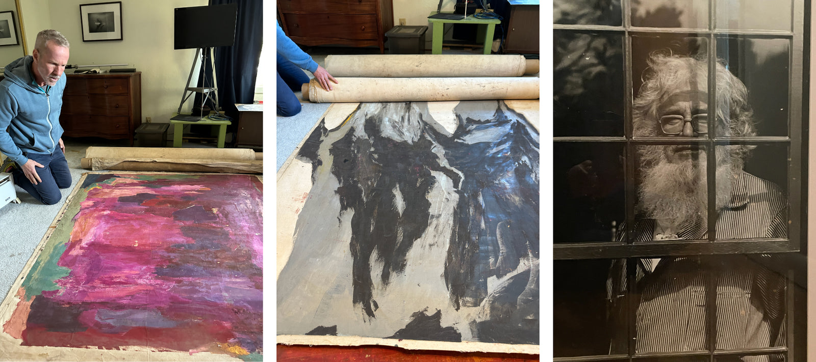 Left: The day we first saw Crehan's rediscovered paintings. Right: Crehan late in life.