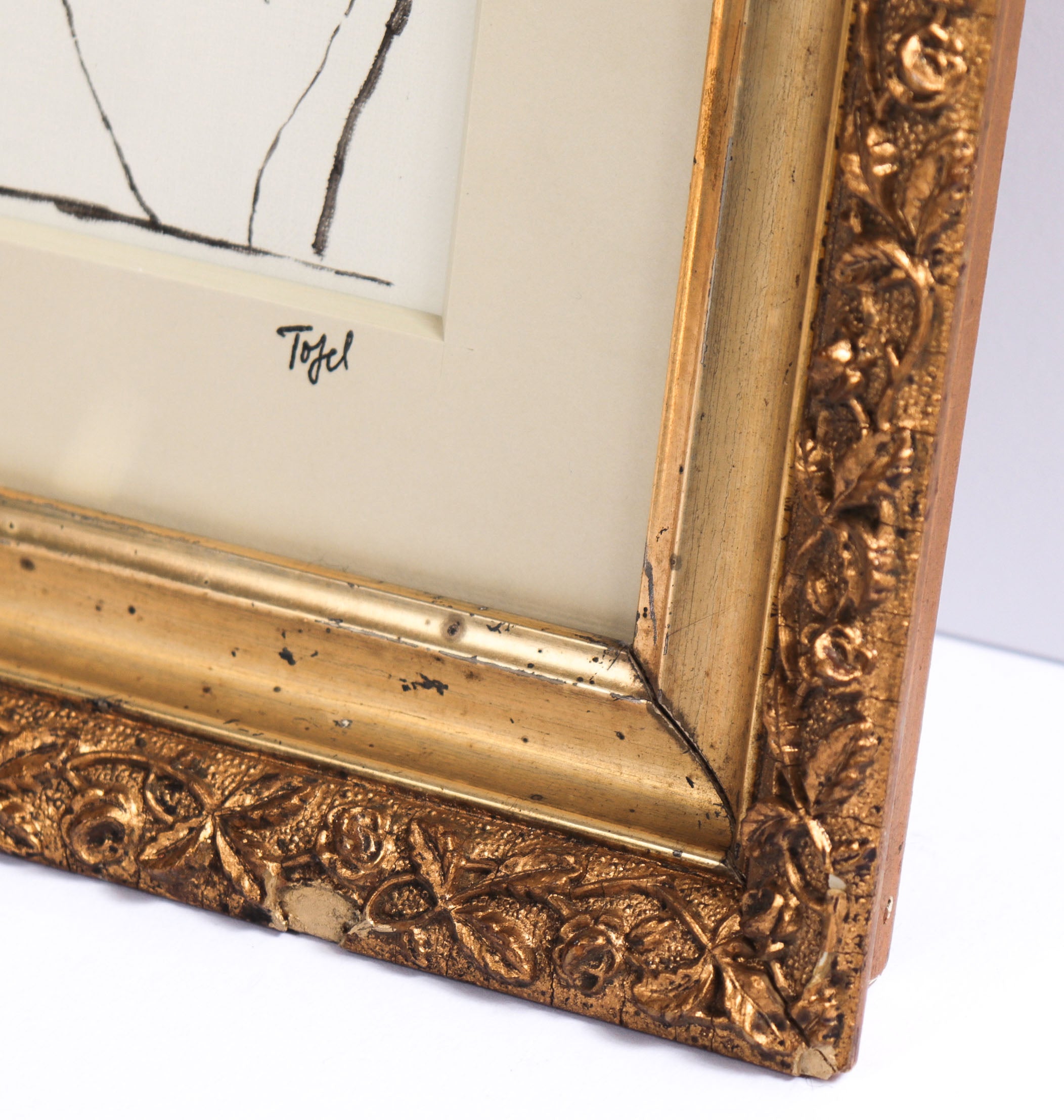 This early 20th century ink on paper surreal figure scene is by Polish-born New York Expressionist Jennings Tofel (1891-1959). Tofel was a friend of Georgia O'Keefe and Alfred Stieglitz. He received an art grant to work in Paris in the 1920s. His work is in the permanent collections of the Smithsonian and the Whitney Museum of American Art. Tofel is known for his allegorical, Expressionist figurative scenes.