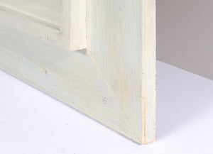 Framed floating in a restored vintage wood frame with an aged brushed white finish and paint splatter using archival spacers and matting behind conservation clear glass. Excellent vintage condition.