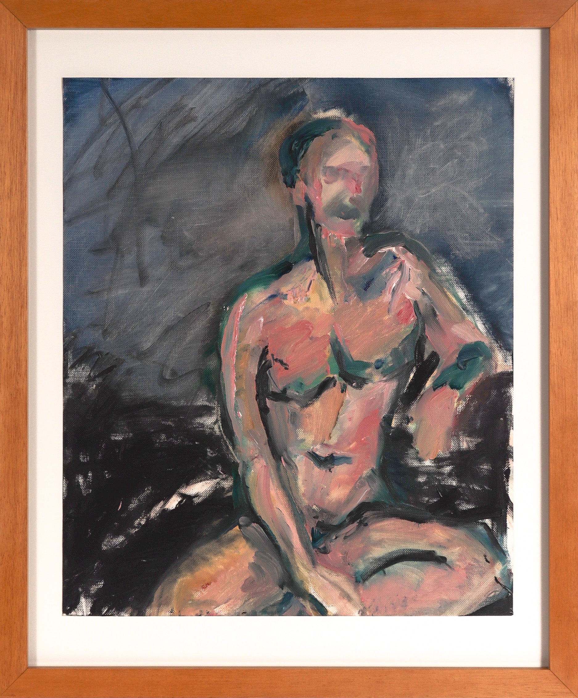 This late 20th century oil on paper abstracted figure is by Lucy Howard Cohen (1944-2019). Cohen was born in 1944 in Greenwich Village (Manhattan) into the heart of the Abstract Expressionist, avant garde art scene. She did her undergraduate work in Madison, WI and later moved to the Bay Area and completed her Doctorate in Psychology at U.C. Berkeley, This would form the foundation for her practice as an artist and a psychologist.
