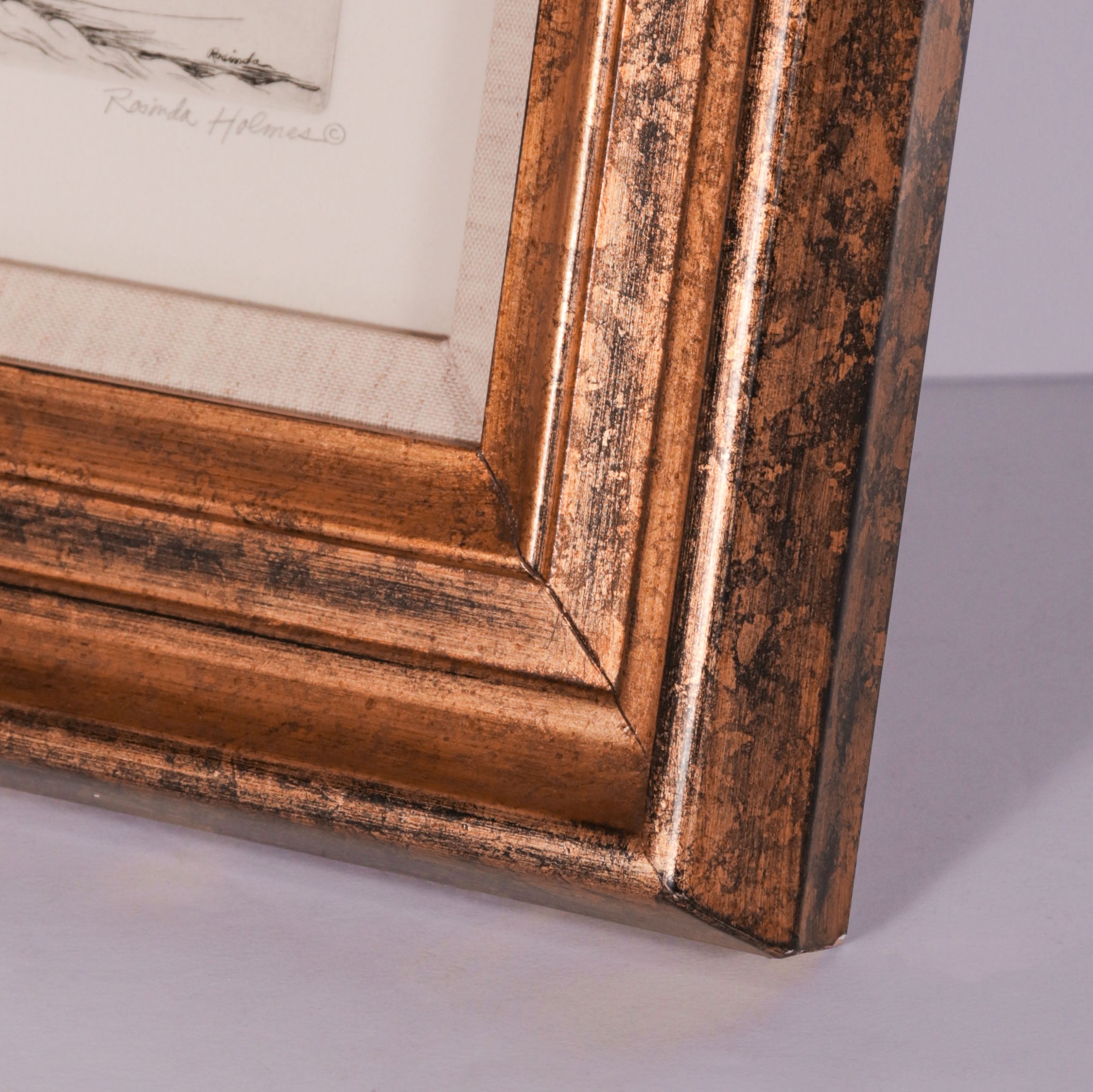 Signed and titled at the bottom. Framed in a restored vintage wood frame with a gold finish patina and linen liner using behind conservation clear glass. Excellent vintage condition.