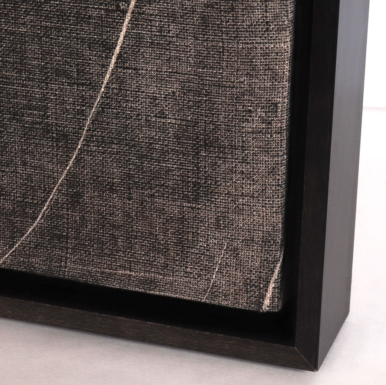 Signed, titled and dated on the back. Excellent condition. Framed in a contemporary wood floater frame with a black stain finish.