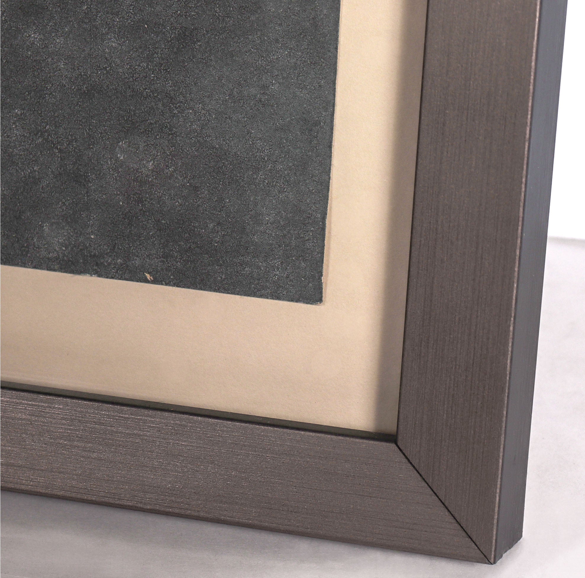 Signed, titled and dated on the back. Excellent condition. Framed floating in a contemporary wood frame with a satin slate-gray finish using archival matting and spacers behind conservation clear glass.