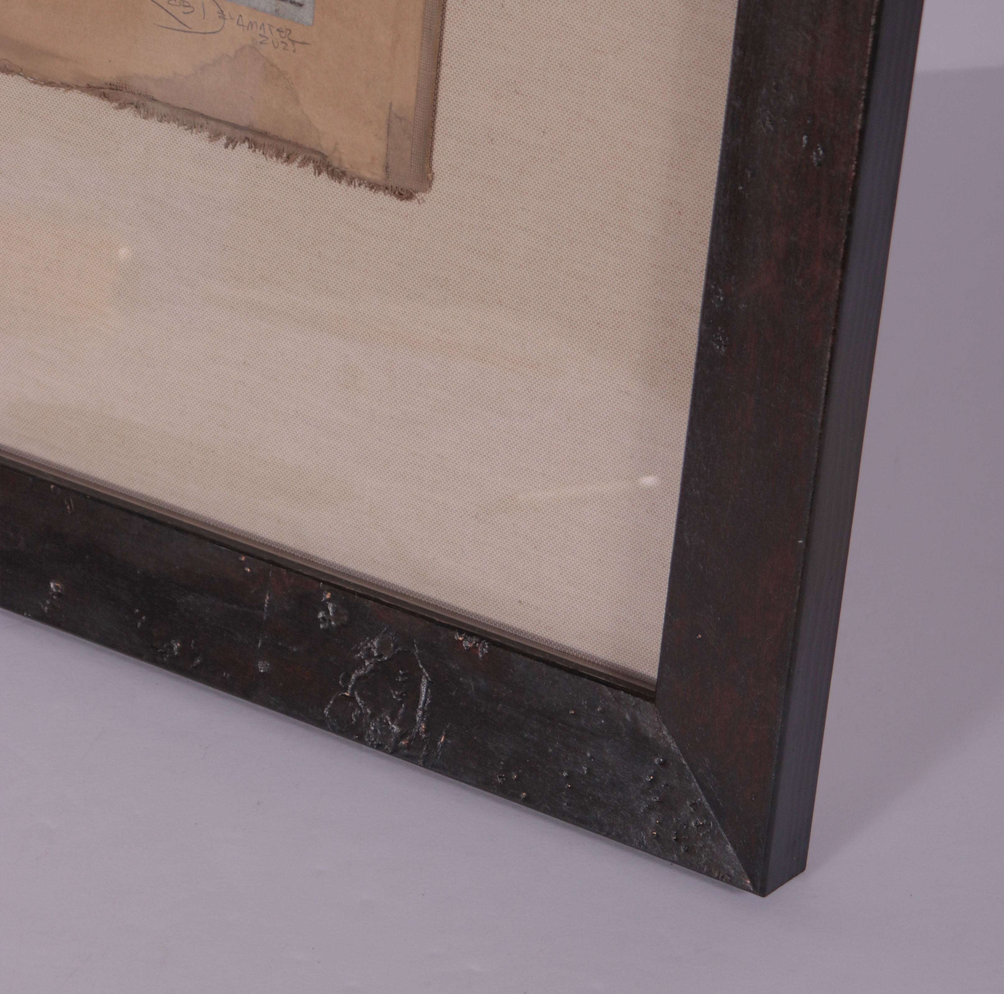 Signed, dated and titled at the bottom and on the back. Excellent condition. Framed floating in a contemporary wide-faced wood frame with a dark painted finish using archival linen matting and clear spacers behind conservation clear glass.