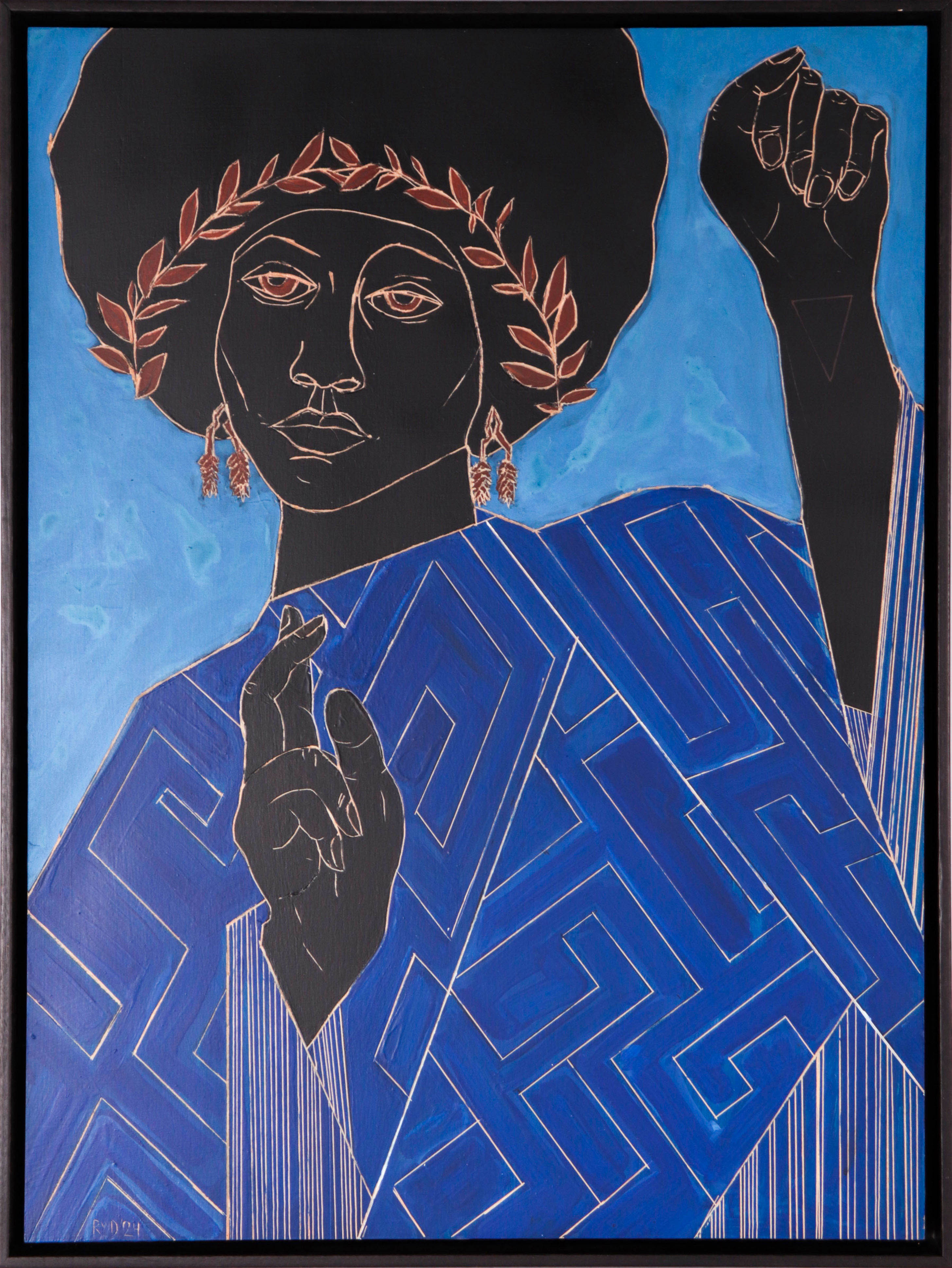 Entitled Birth of Consciousness (Eve), this 2024 hand-mixed pigment on panel scene is by San Francisco artist and Lost Art Salon co-owner Rob Delamater (b.1966). Delamater creates abstract and figurative compositions that evoke organic shapes and motifs from the natural world. His works are created using various forms of printmaking, painting, and collage.