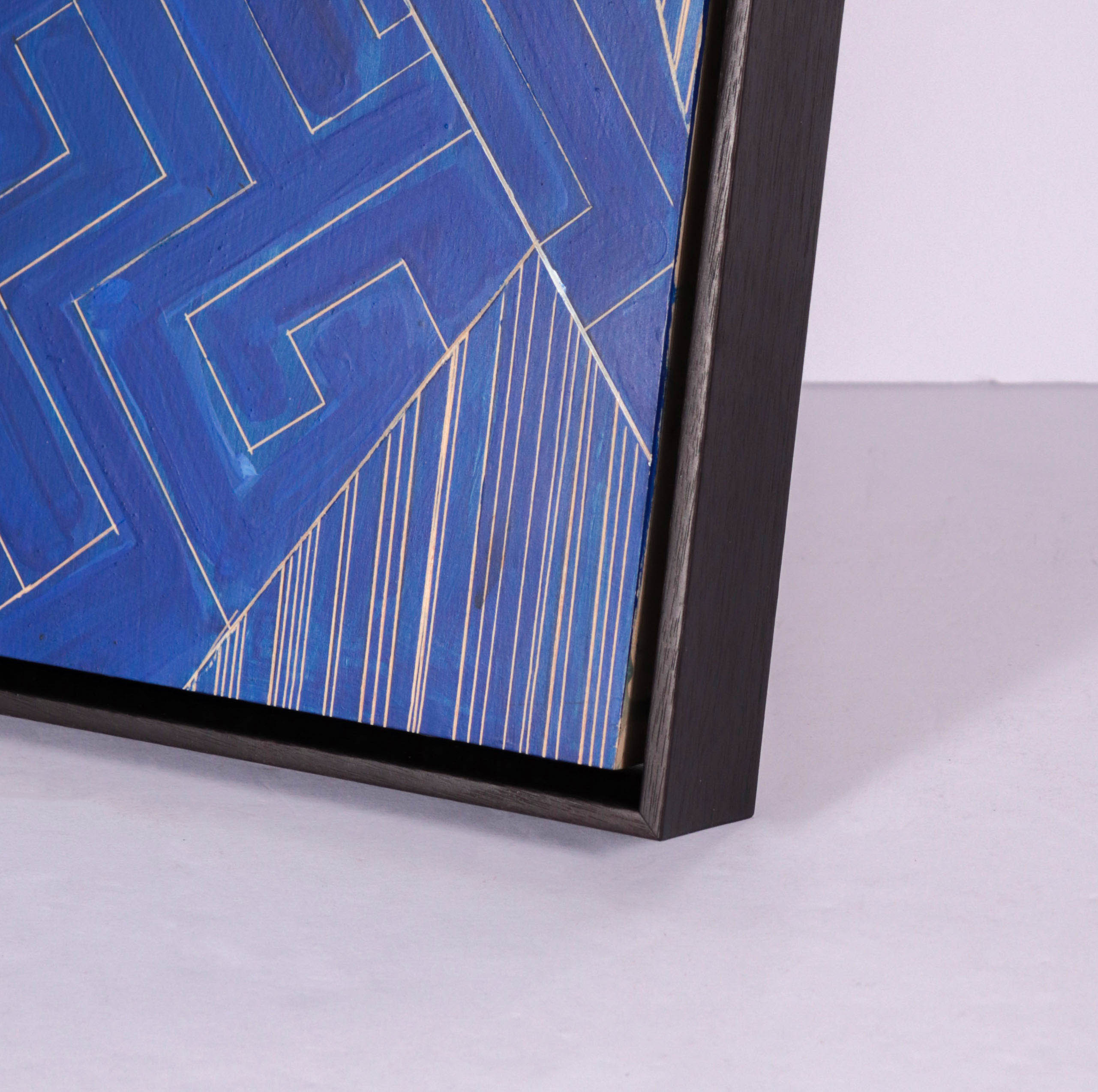 Signed and dated lower right. Signed, dated and titled on the back. Excellent condition. Framed in a contemporary wood floater frame with a black finish.