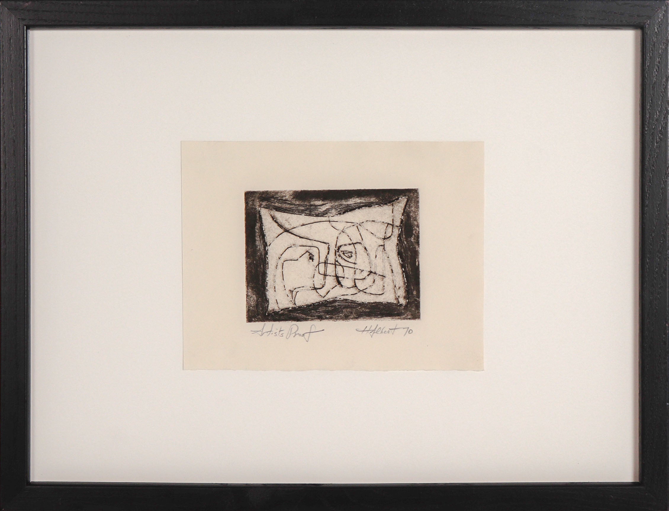 This 1970 etching on paper depicting two abstracted bulls facing each other is by Chicago artist, musician and composer Howard Albert (1911-2004). Albert studied at the Chicago Art Institute and with Stanley William Hayter at Atelier 17 in New York. He was a master printmaker and the founder of the Pauper's Press.