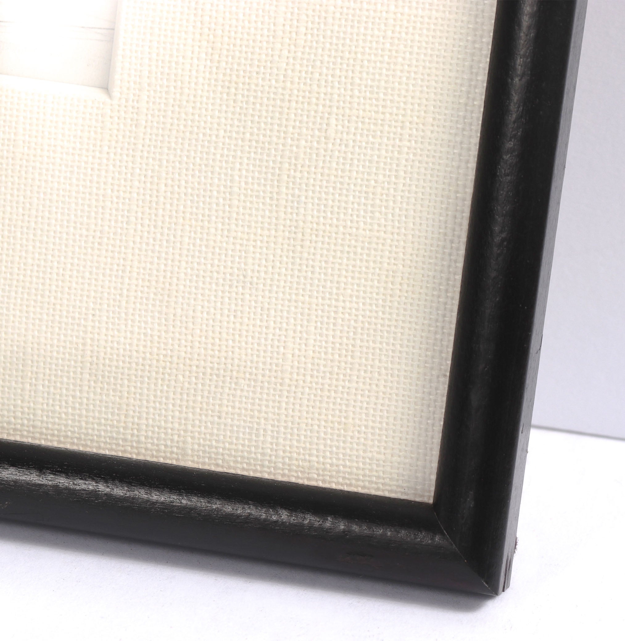 Signed lower left. Framed in a vintage wood framed painted black using archival warm white linen matting behind conservation clear glass. Excellent vintage condition.