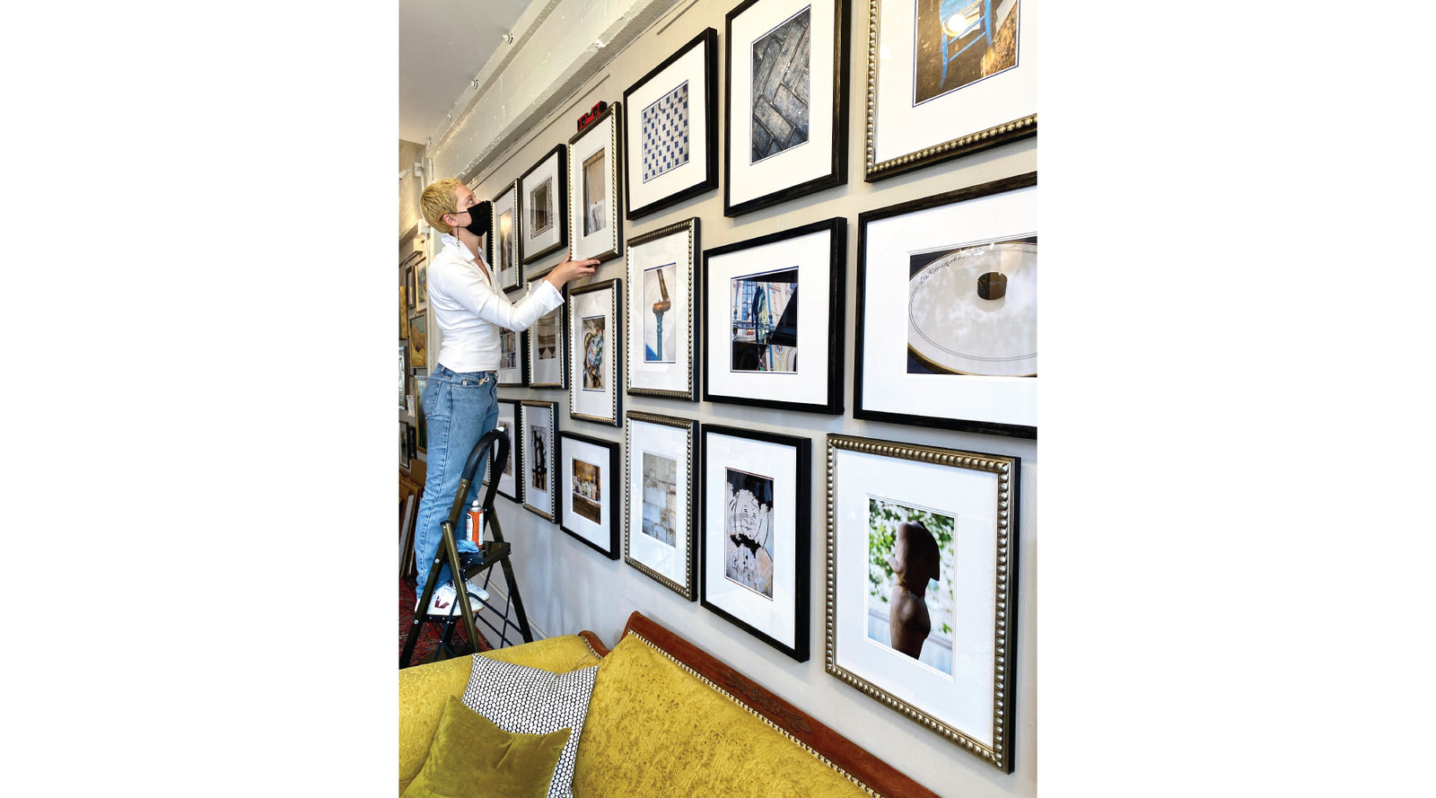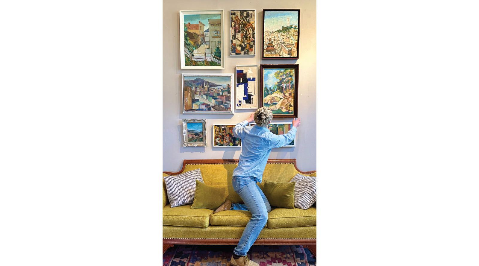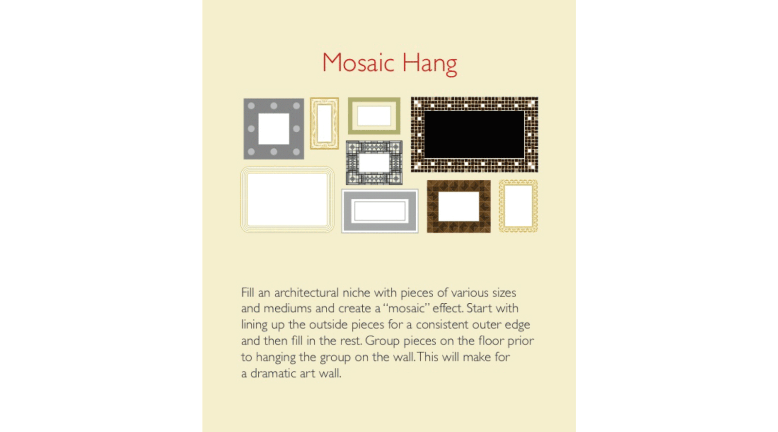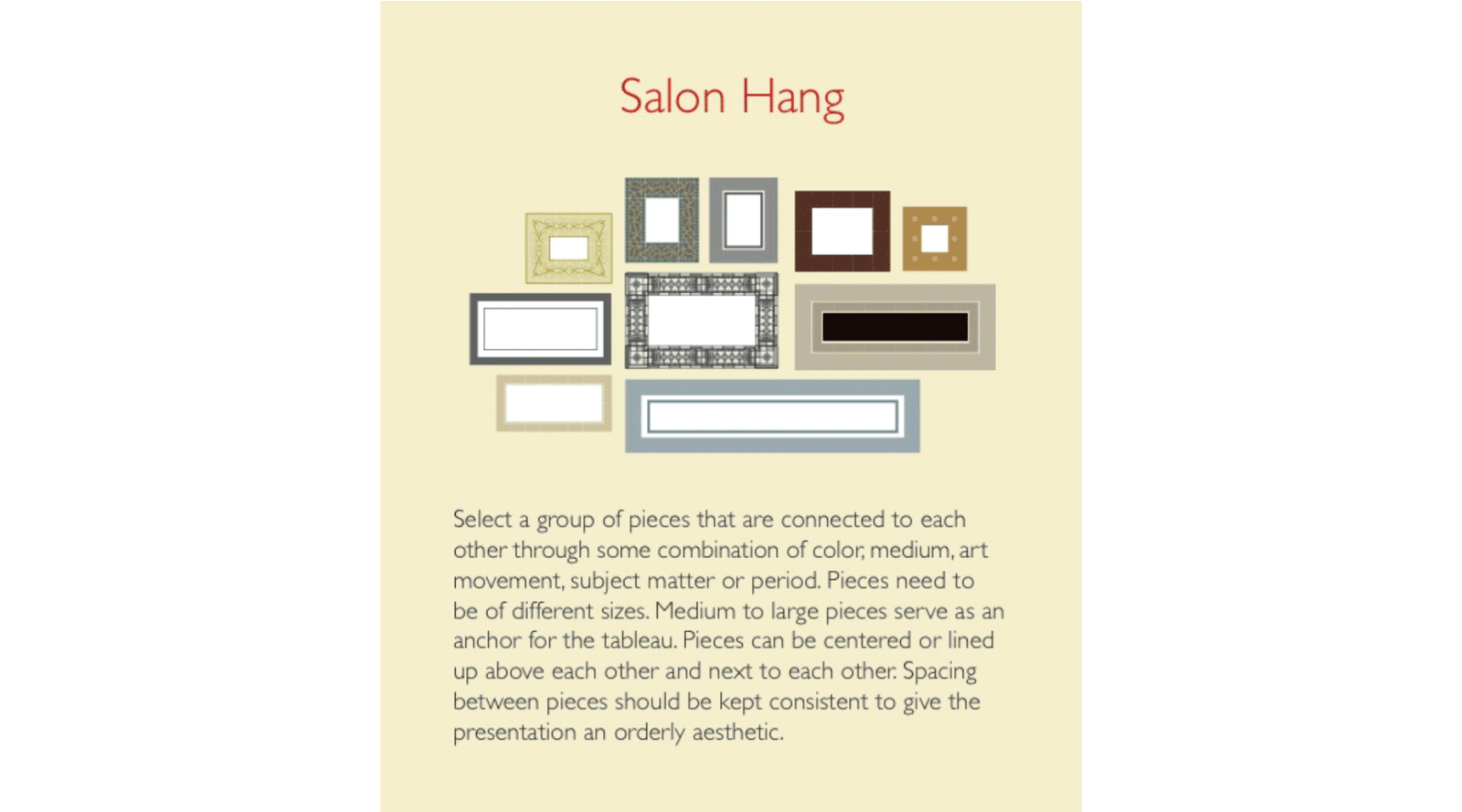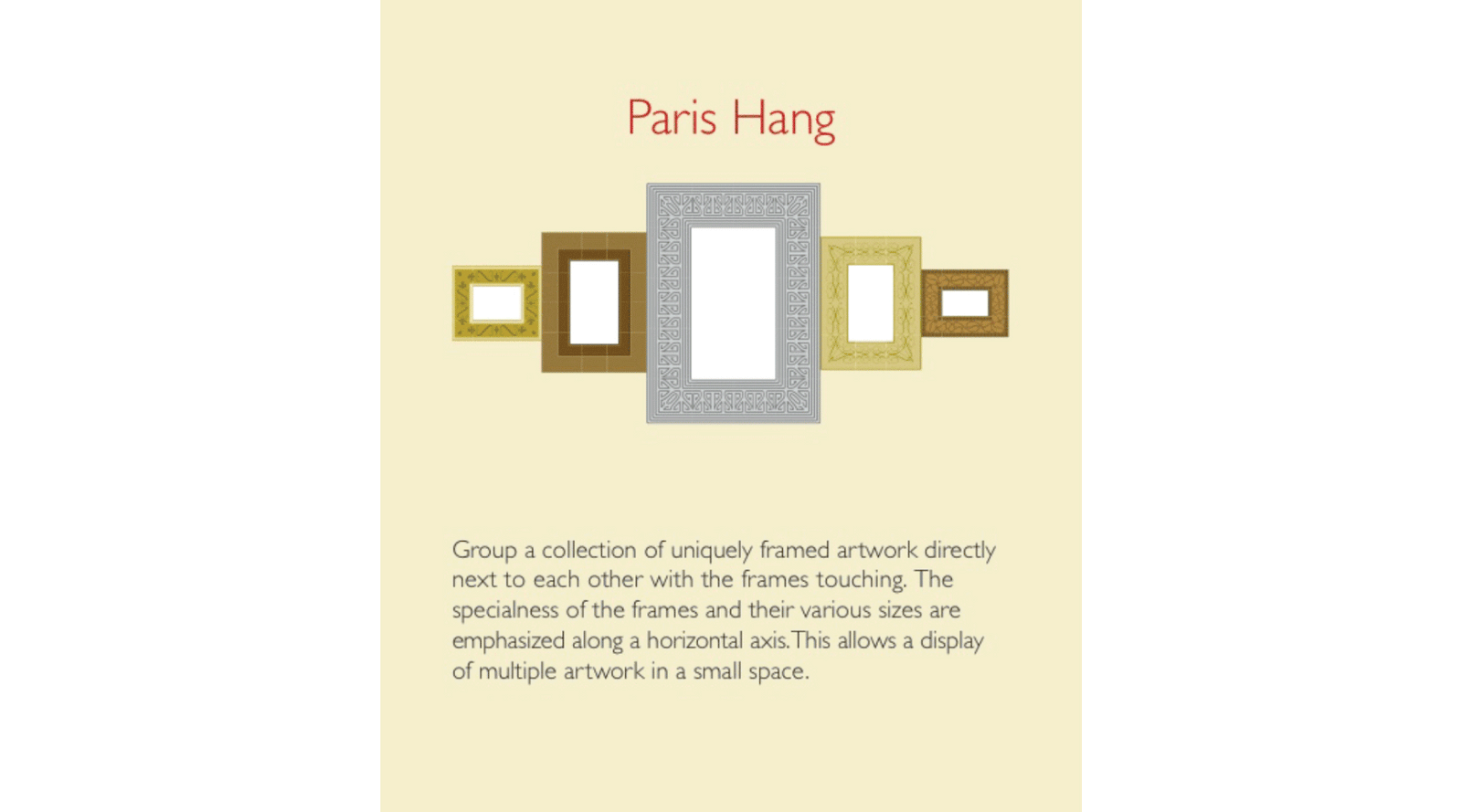 , demonstrating how to arrange a classic gallery wall with seascapes and landscapes.