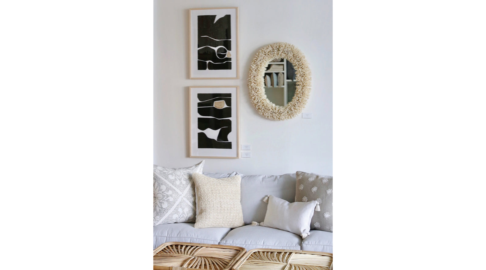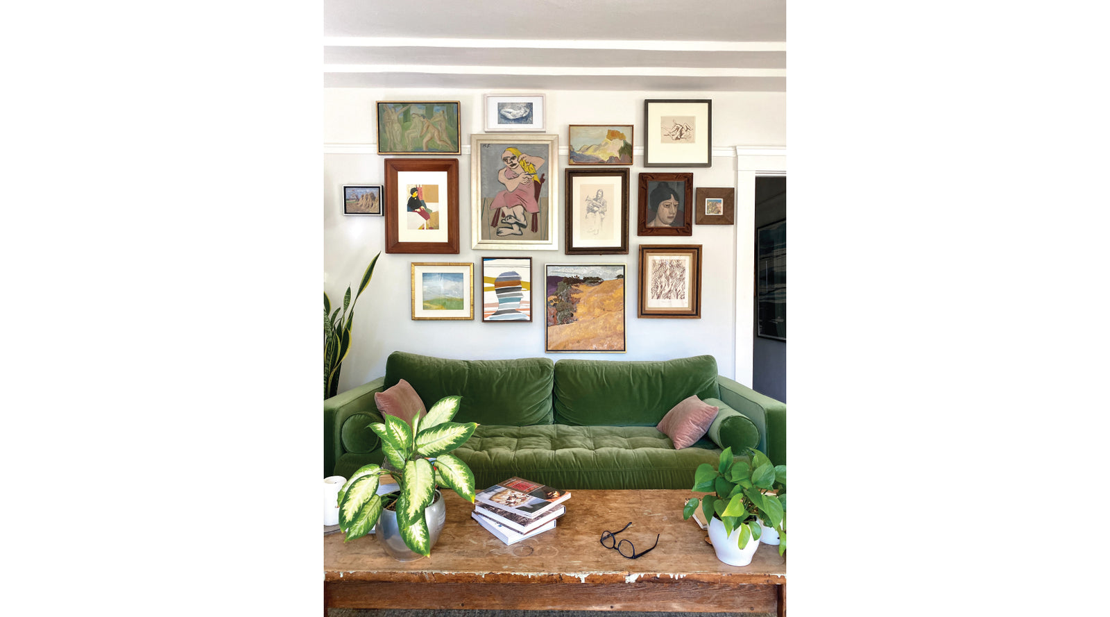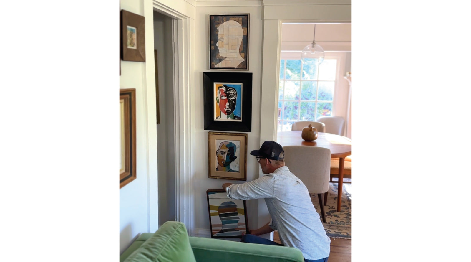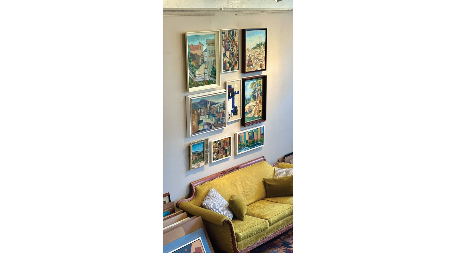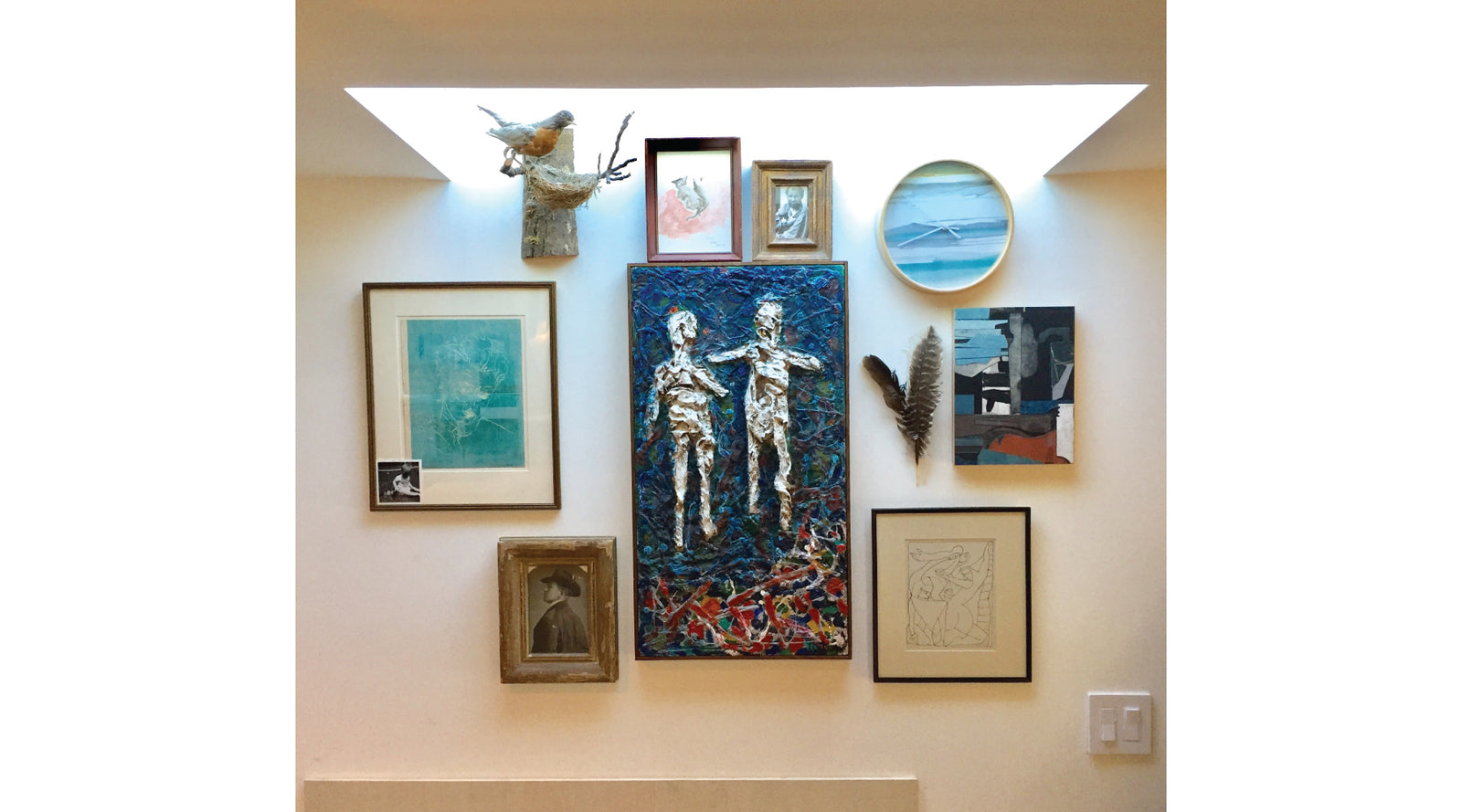 , demonstrating how to arrange a classic gallery wall with seascapes and landscapes.