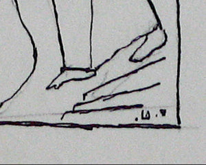 This early 20th century ink on paper abstract figure scene is by Polish-born New York Expressionist Jennings Tofel (1891-1959). Tofel was a friend of Georgia O'Keefe and Alfred Stieglitz. He received an art grant to work in Paris in the 1920s. His work is in the permanent collections of the Smithsonian and the Whitney Museum of American Art. Tofel is known for his allegorical, Expressionist figurative scenes.
