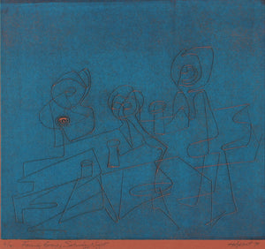 Entitled Family Group; Saturday Night this 1970 serigraph on paper figure scene is by Chicago artist, musician and composer Howard Albert (1911-2004). Albert studied at the Chicago Art Institute and with Stanley William Hayter at Atelier 17 in New York. He was a master printmaker and the founder of the Pauper's Press.
