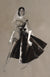 Entitled #80A, this 1977 ink and gouache Modernist figure drawing is signed by New York artist C. R. at the bottom.