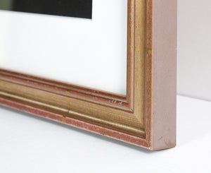 Signed and dated in the image area in the lower right. Good vintage condition. Framed in a contemporary wood frame with a brushed gold finish using archival matting behind conservation clear glass.
