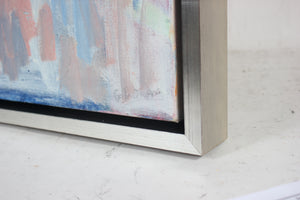 This 1980s oil on canvas abstract painting entitled Arizona by French-American painter Georgette London Owens (b.1920). Owens was born in Paris and studied at École des Beaux-Art. She studied with the Cubist painter André Lhote for several years during WWII when Paris was under German occupation. She first held an atelier in Montparnasse adjacent to Alberto Giacometti. Picasso himself came to her first exhibition at Galerie Poirier and congratulated her. She exhibited throughout Paris in the late 1940s, at Musée D'Art Moderne, Le Palais de Tokyo, Musée des Beaux Arts, and the Salon des Indépendants. Owens moved to New York and exhibited at MOMA and several galleries on Madison Avenue. She met Salvador Dali, who became her mentor. Owens became an interior designer, first for Dali and then for clients such as Rex Harrison and Jackie Kennedy. She also designed jewelry and had a line commissioned by Pierre Cardin. In 1978 she moved to San Francisco and devoted all of her time to painting. In 1988, Owens founded the Alliance for Women Artists to help professional female artists exhibit both nationally and internationally. She continued to exhibit across Europe and traveled extensively. Owens lives in Marin County, California.