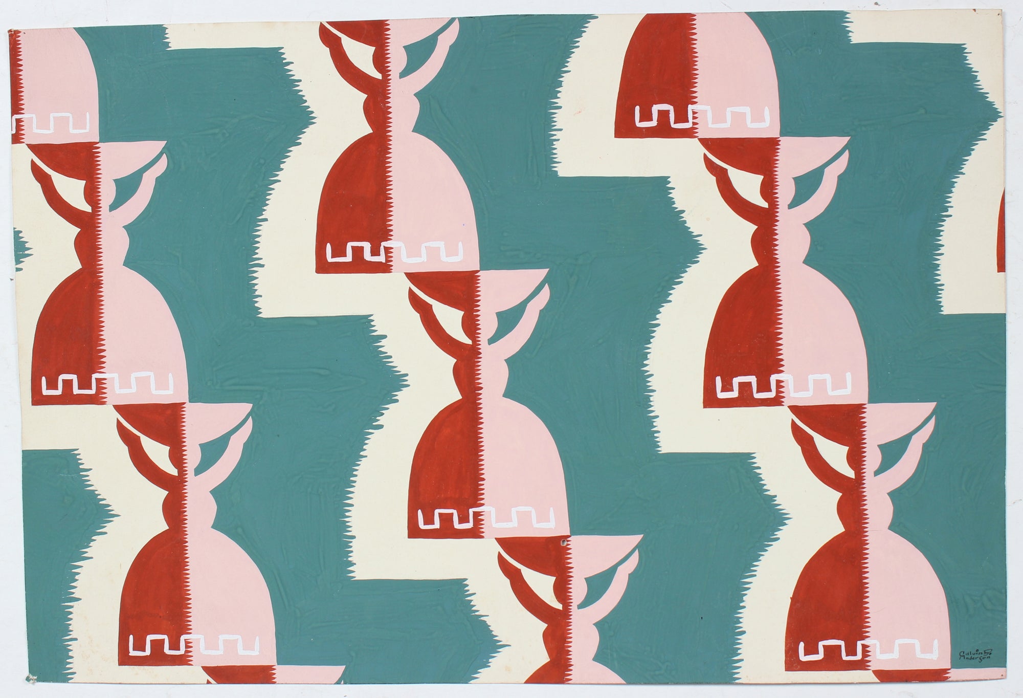 This early to mid 20th century ink on paper mansion drawing is by Bay Area painter, printmaker, and designer Calvin Anderson (1925-2023). He studied at CCAC and Art Center College in the 1940s and worked as a commercial art director in San Francisco for 40 years. Anderson created graphics for the SF Ballet for 20 years, and two of his poster designs are in the permanent collection at SFMOMA. Anderson taught Design at SFAI in the 1960s. He was a prolific printmaker in the 1990s-2000s, creating hundreds of minimal, abstract compositions drawing from his love of Modernism and design.