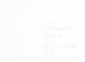 Entitled The Etruscans IV, this figurative 2018 monotype on paper abstract is by San Francisco artist and Lost Art Salon co-owner Rob Delamater (b.1966). Delamater creates abstract compositions that evoke organic shapes and motifs from the natural world. His works are created using various forms of printmaking, painting, and collage.