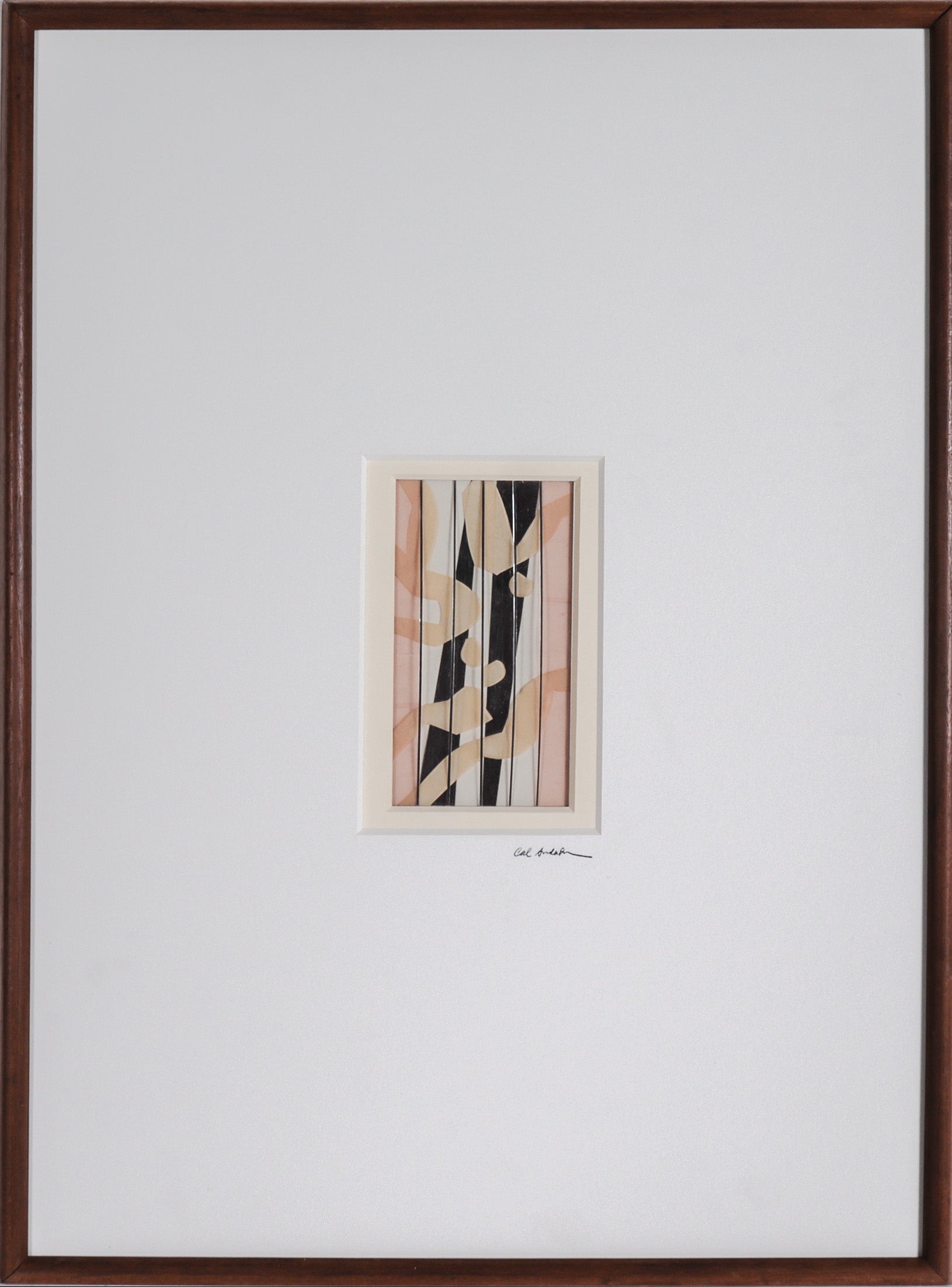 This mid 20th century gouache on paper drawing of seascape is by Bay Area painter, printmaker, and designer Calvin Anderson (1925-2023). He studied at CCAC and Art Center College in the 1940s and worked as a commercial art director in San Francisco for 40 years. Anderson created graphics for the SF Ballet for 20 years, and two of his poster designs are in the permanent collection at SFMOMA. Anderson taught Design at SFAI in the 1960s. He was a prolific printmaker in the 1990s-2000s, creating hundreds of minimal, abstract compositions drawing from his love of Modernism and design.