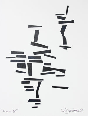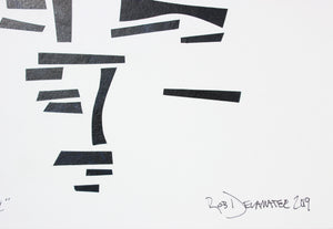 Entitled Finial XV, this 2019 collage and India ink abstract on paper is by San Francisco artist and Lost Art Salon co-owner Rob Delamater (b.1966). Delamater creates abstract compositions that evoke organic shapes and motifs from the natural world. His works are created using various forms of printmaking, painting, and collage.
