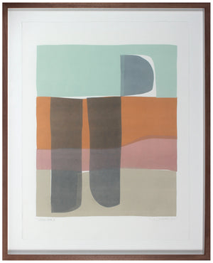 Entitled Canyon Lands III, this 2019 monotype on paper abstracted landscape deconstruction is by San Francisco artist and Lost Art Salon co-owner Rob Delamater (b.1966).  Delamater creates abstract compositions that evoke organic shapes and motifs from the natural world. His works are created using various forms of printmaking, painting, and collage.