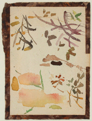 This 1970s watercolor on paper abstract is by Chicago-based painter, photographer, and printmaker Barbara Lewis (1925-2008). Lewis studied at the Art Institute of Chicago (1943), University of Illinois at Chicago (1967-70), and the IIT Institute of Design (MFA in Printmaking, 1970-72). Through her mixed-media compositions, she explored Abstract Expressionism and Pop Art, often using imagery of Chicago and her travels to Europe and Northern Africa.