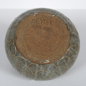 This April 1989 handmade ceramic is by distinguished watercolor painter and ceramacist Jack Bernard Bevier (1923-1996). Bevier was best known for his evocative landscapes, seascapes of the Monterey Peninsula, and boat and harbor scenes. Born in Ann Arbor, Michigan, Bevier served in the Army Air Corps during World War II before pursuing his passion for art at the Art Institute of Chicago, where he graduated with honors.