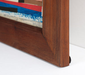 This late 20th century collage on board abstract is by Russian-born artist Leo Saal (1912-1996). Saal was born in Petrograd (now Saint-Petersburg), Russia shortly before the Bolshevik Revolution. He endured three years in The Gulag, and was captured by Germany during WWII. He worked in the circus and theater and was trained in photography and filmmaking. He moved to Washington DC when he was invited to work for the CIA in 1953. Throughout all this, and over six decades, Saal managed to draw, sketch, do printmaking, make collages and paint - often inspired by early references to turn-of-the-century Russian paintings. Recurring themes were frequently related to European history, the circus metaphor, mother and child, and the beach. Saal was primarily self-taught and created thousands of pieces with strong influences from Beckman, Picasso, Manet, Feininger, Velasquez and Goya.