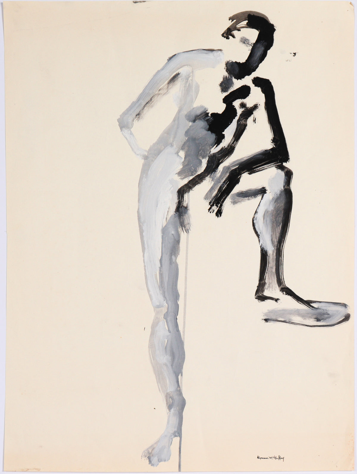 Excellent vintage condition. Estate stamped lower right. Distemper refers to any water based paint that blends chalk with an organic-based binder. It has a soft, velvety finish and was commonly used by Bay Area Figurative artists in the 1950s-1960s.