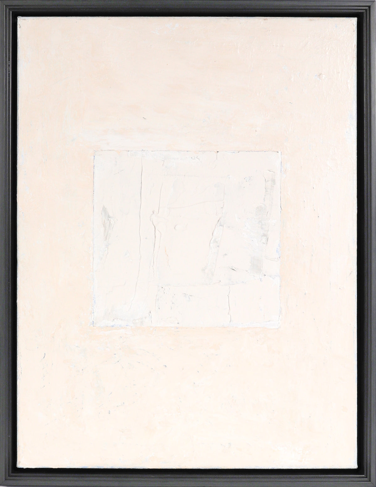 Signed on the back. Excellent vintage condition. Framed in a contemporary wood floater frame with a graduated bevel detail and satin black finish.