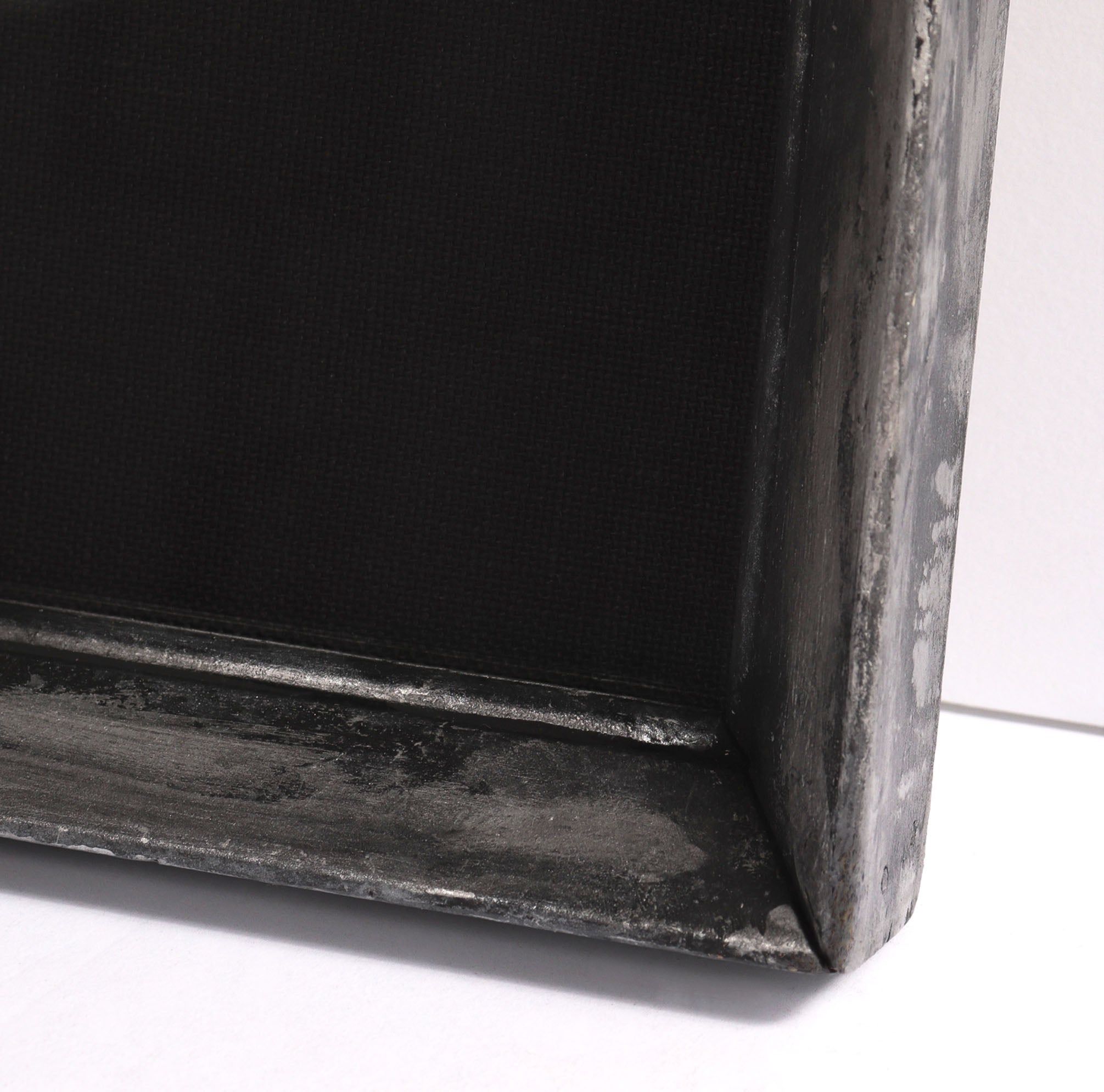 Signed and titled at the bottom. Framed in a restored vintage wood frame with a silver and black painted patina finish using black archival linen matting behind conservation clear glass. Excellent vintage condition.