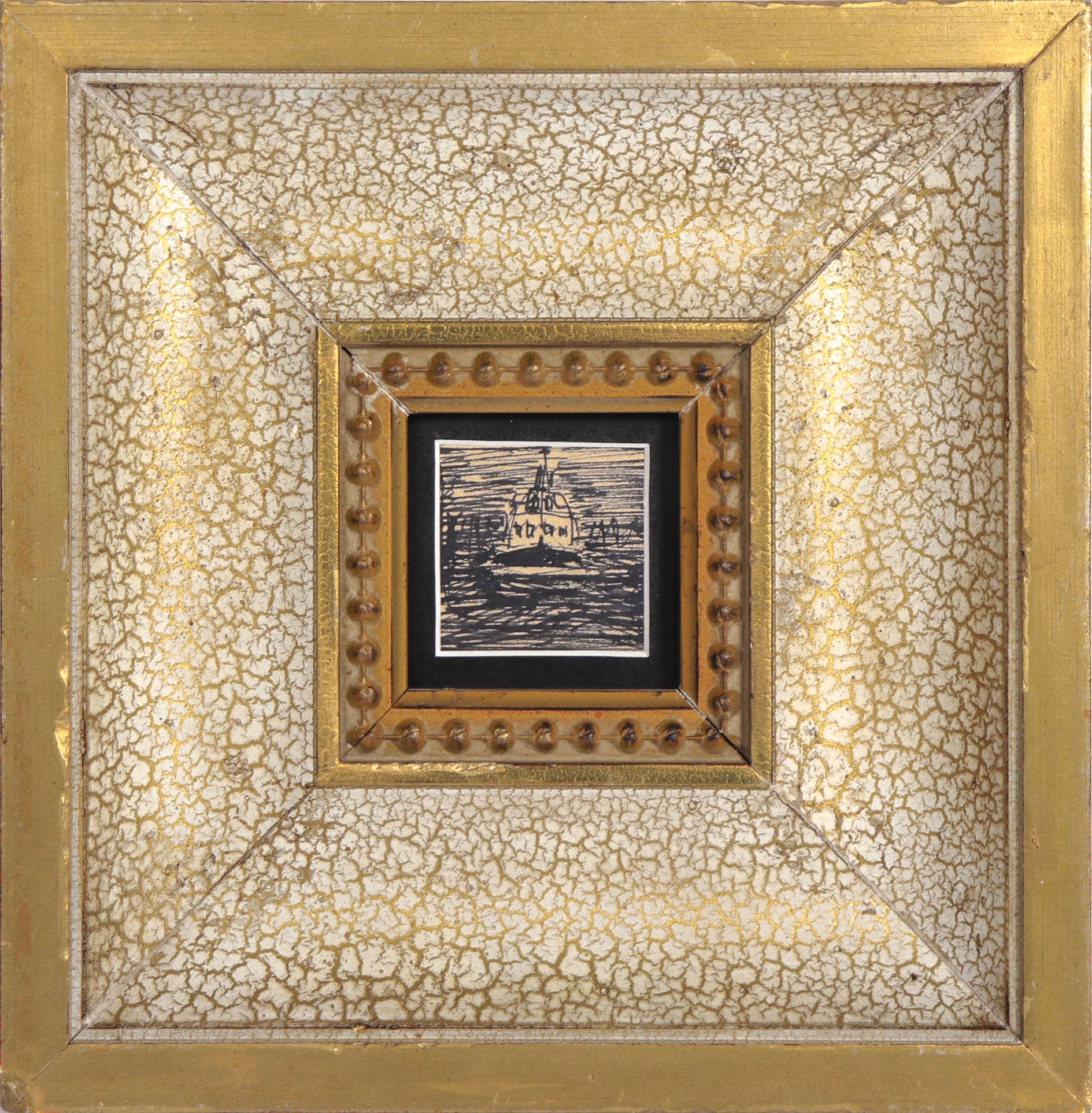 Petit 20th Century Ink Boat Drawing