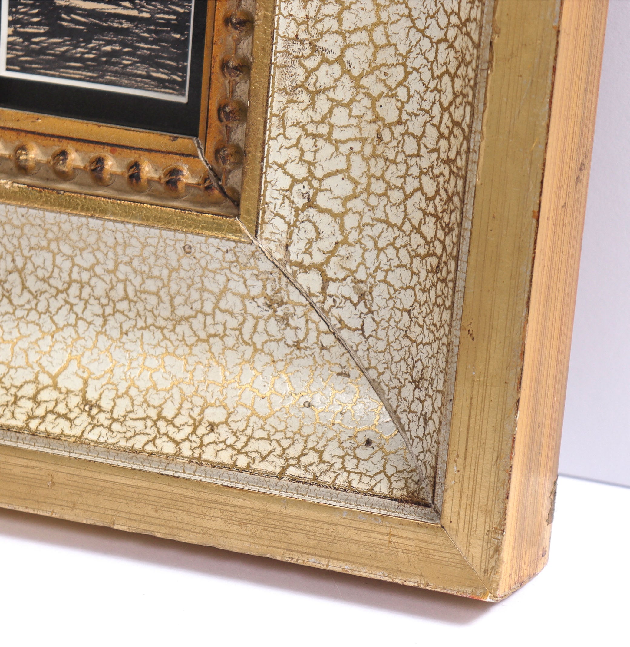Estate stamped on the back. Excellent vintage condition. Framed in a restored vintage wide-faced wood frame with a gold finish using archival matting behind conservation clear glass.