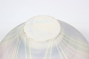 This ceramic pot features a pastel ombre, both in cool and warm tones. The surface is accented by white lines, enhancing the separation of colors.Mid-Late 20th Century Ceramic12"x10"